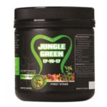 Elevated chelated trace elements and Vitamin B-1 have been added to the Jungle Green – 500g formulation. Additionally, we have added a penetrating ingredient that increases solubility, allowing the root medium to reach its feed more easily and promoting quick growth and overall increased production. Jungle Green – 500g by Future Harvest is formulated with increased chelated trace elements and Vitamin B-1. Additionally, we have added a penetrating ingredient that increases solubility, allowing the root medium to reach its feed more easily and promoting quick growth and overall increased production. Throughout weeks 1-4 of your veg cycle, apply Jungle Green 17-15-17. It provides quick-acting nourishment for brisk growth.